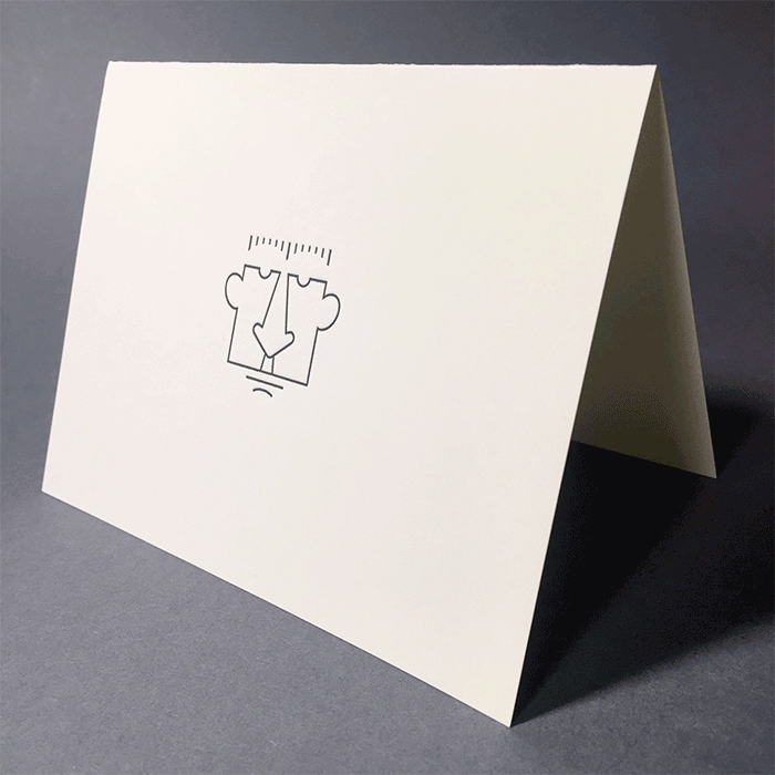 Five letterpress printed cards on—slightly—creamy paper, ready to be hand-written and sent on their way to a friend or a loved one. They are humorous with a sober twist. They make for a good small present.